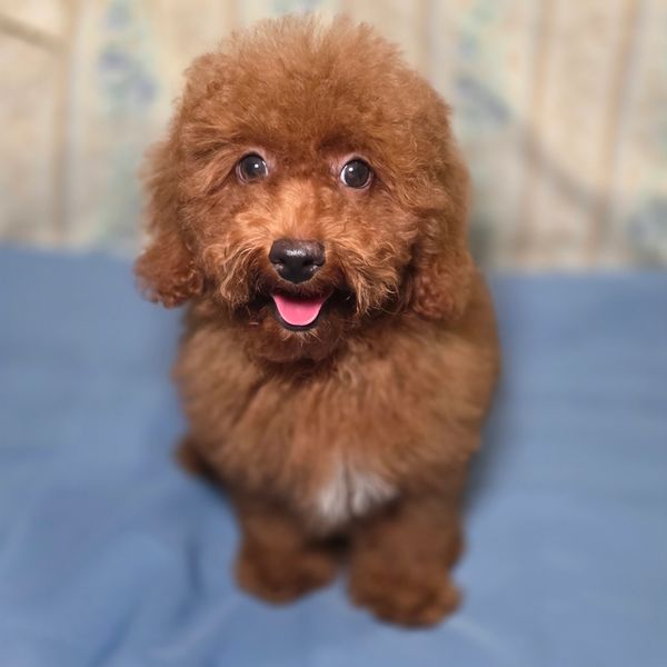 Dale is Dark deep red Toy poodle boy with white blazer on chest. Dale will be around 8 pounds fully grown. And is just stunning puppy. Now $1200